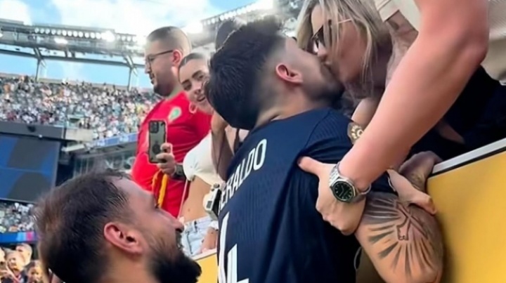 比赛结束后 ,多纳鲁马贴心的把贝拉尔多“举上看台”,让他可以亲吻女友😂🫶 ​​​